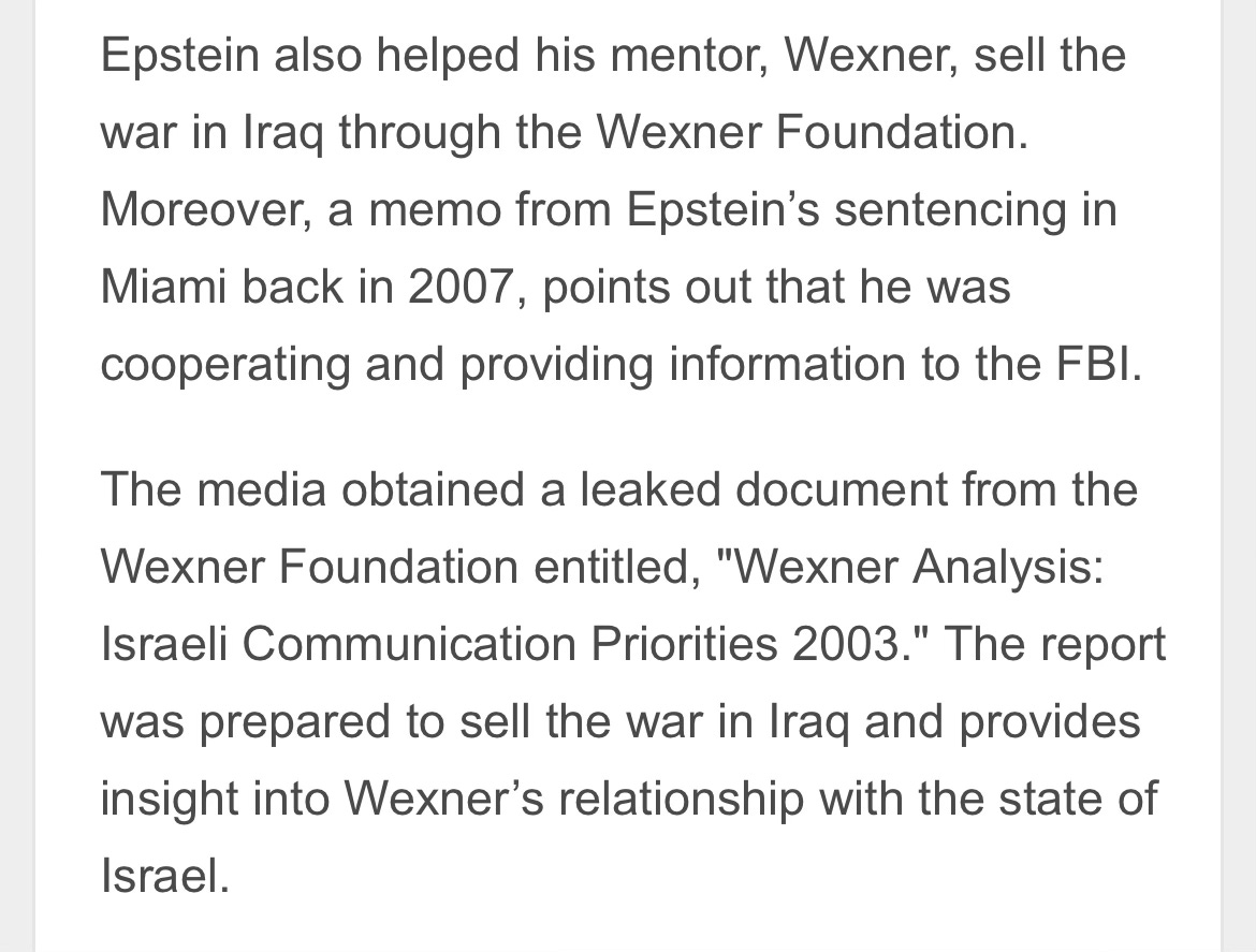 The disgusting reality of the Epstein/Maxwell case is that foreign intelligence agencies have taken advantage of the darkest fantasies of our political, media and science and tech influencers to lie the United States into wars of aggression, murdering millions of innocent people, and making our country and the world less safe. And the two countries at the head of this operation are considered our greatest allies in the Middle East: Saudi Arabia and Israel.